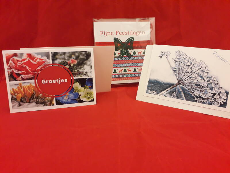 Alle kaarten zijn verkrijgbaar in verschillende formaten zoals A5 (1,00) en A6 (0,60). De vierkante kaarten zijn alleen in dit formaat (vierkant 1,00) leverbaar.